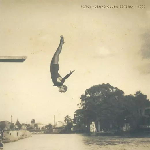 Atleta Arthur Busin do Clube Esperia. Salto no Rio Tietê em 15/11/1927